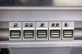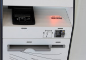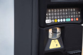 BANGKOK, Tajlandia - 27 marca 2022: Zamknąć kod kreskowy automatycznej samokontroli w maszynie na lotnisku Suvarnabhumi. Port lotniczy Suvarnabhumi został otwarty w dniu 15 września 2006 r..