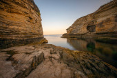 Zdjęcie "Kerpe Rocks i Różowe Skały. Niesamowity widok na zachód słońca na plaży składa się z różnych kształtów skał. Kolorowy obraz artystyczny. Olbrzymie kamienie na plaży. Kerpe, Kocaeli Izmit, Turcja." może być wykorzystywane do celów osobistych i komercyjnych zgodnie z warunkami zakupionej licencji Royalty-free. Obraz jest dostępny do pobrania w jakości wysokiej rozdzielczości do 5760x3840.