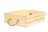 Naturalna pusta skrzynia drewniana do prezentów na drewnianym biurku