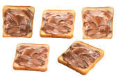 Pyszne kromki chleba izolowane na białym tle, widok z góry.