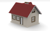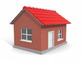 Red Small House, To jest 3D renderowany obraz generowany przez komputer. Odizolowane na biało.
