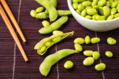 Zdjęcie "Zbliżenie białej miski z ziarnami edamamu na białym drewnianym stole, pionowo, z przestrzenią do kopiowania" może być wykorzystywane do celów osobistych i komercyjnych zgodnie z warunkami zakupionej licencji Royalty-free. Obraz jest dostępny do pobrania w jakości wysokiej rozdzielczości do 5760x3840.