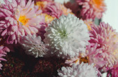 Zdjęcie "Zbliżenie zdjęcie gromadki ciemnoróżowych chryzantemy z żółtymi centrami i białymi końcówkami na płatkach. Wzór chryzantemy w parku kwiatów. Gromada różowych kwiatów chryzantemy fioletowej." może być wykorzystywane do celów osobistych i komercyjnych zgodnie z warunkami zakupionej licencji Royalty-free. Obraz jest dostępny do pobrania w jakości wysokiej rozdzielczości do 5760x3840.
