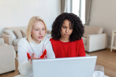 Zdjęcie "studentek współpracujących ze sobą w kampusie uniwersyteckim poszukujących informacji do nauki na stronach internetowych za pomocą nowego nowoczesnego laptopa za pomocą bezpłatnego połączenia Wi-Fi w pomieszczeniach" może być wykorzystywane do celów osobistych i komercyjnych zgodnie z warunkami zakupionej licencji Royalty-free. Obraz jest dostępny do pobrania w jakości wysokiej rozdzielczości do 5760x3840.
