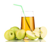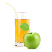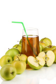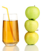 Sok w fast food zamknięty kubek z rurką i jabłkami izolowane na białym