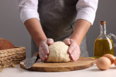 Zdjęcie "Kobieta ugniatająca ciasto przy drewnianym stole przy białej ceglanej ścianie, zbliżenie" może być wykorzystywane do celów osobistych i komercyjnych zgodnie z warunkami zakupionej licencji Royalty-free. Obraz jest dostępny do pobrania w jakości wysokiej rozdzielczości do 5760x3840.