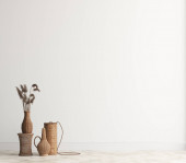 Zdjęcie "Wnętrze pokoju z białą ścianą. Wazon z liściem palmowym na dekoracyjnym stole akcentowym. Opróżniona ściana i marmurowa podłoga, wiszące światła. Nowoczesny wystrój domu. 3d renderowanie" może być wykorzystywane do celów osobistych i komercyjnych zgodnie z warunkami zakupionej licencji Royalty-free. Obraz jest dostępny do pobrania w jakości wysokiej rozdzielczości do 5760x3840.