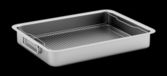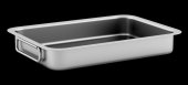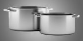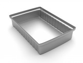 naczynia do pieczenia metalicznej na białym tle na szarym tle