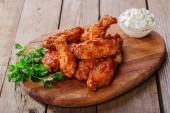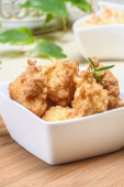 Kawałki kurczaka w cieście z sosem pikantnym i Fasolka szparagowa