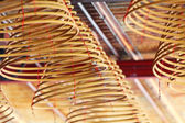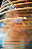 Buddyjska świątynia Huynh Dao. Czerwone cewki kadzidła wiszą na suficie. Doktorku Chau. Wietnam.