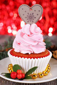 Ciasto z kremem na talerzyk z Bożego Narodzenia ozdoba na drewnianym stole tło