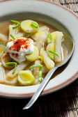 Zdjęcie "bulion z kurczaka z pierogami i warzywami" może być wykorzystywane do celów osobistych i komercyjnych zgodnie z warunkami zakupionej licencji Royalty-free. Obraz jest dostępny do pobrania w jakości wysokiej rozdzielczości do 5760x3840.