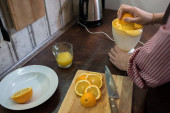 Zdjęcie "Jak wysuszyć plasterki pomarańczy na wystrój świąteczny. Proces suszenia plastrów soków w piecu. Kobieta krojenie plasterki pomarańczy i owoców cytrusowych do suszenia w piekarniku w kuchni domowej." może być wykorzystywane do celów osobistych i komercyjnych zgodnie z warunkami zakupionej licencji Royalty-free. Obraz jest dostępny do pobrania w jakości wysokiej rozdzielczości do 5760x3840.