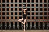 Baleriny na palcach ansamble w pobliżu czarna ściana