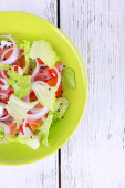 Świeże ryby sałatka z warzyw na talerzu na drewniany stół szczegół