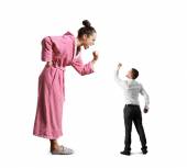 emocjonalne kobieta krzyczeć na mały człowiek przestraszony