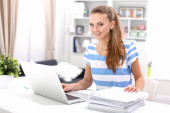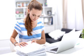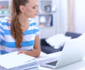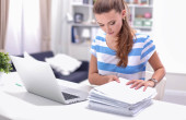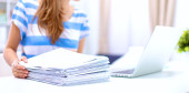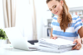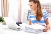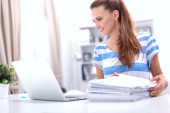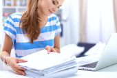 Zdjęcie "Kobieta z dokumentami na biurku i laptopie" może być wykorzystywane do celów osobistych i komercyjnych zgodnie z warunkami zakupionej licencji Royalty-free. Obraz jest dostępny do pobrania w jakości wysokiej rozdzielczości do 5760x3840.