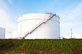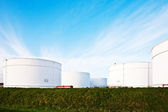 białe zbiorniki w zbiorniku gospodarstwa z niebieskim niebem