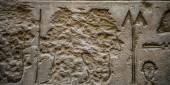Egipskie hieroglify na ścianie świątyni Horusa w Egipcie