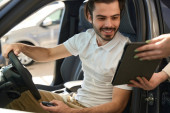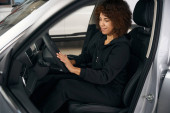Zdjęcie "Zadowolony salon samochodowy kobieta klient odbierający auto zdalnego sterowania jednostki od sprzedawcy" może być wykorzystywane do celów osobistych i komercyjnych zgodnie z warunkami zakupionej licencji Royalty-free. Obraz jest dostępny do pobrania w jakości wysokiej rozdzielczości do 5760x3840.