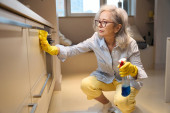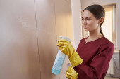 Zdjęcie "Kobiety sprzątające pracują w biurze w ubraniach roboczych i gumowych rękawiczkach, mają serwetki i środki czystości" może być wykorzystywane do celów osobistych i komercyjnych zgodnie z warunkami zakupionej licencji Royalty-free. Obraz jest dostępny do pobrania w jakości wysokiej rozdzielczości do 5760x3840.