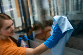 Zdjęcie "Zespół firmy sprzątającej w kombinezonach czyści przestrzeń współpracowników, używają odkurzacza, mopa i serwetek" może być wykorzystywane do celów osobistych i komercyjnych zgodnie z warunkami zakupionej licencji Royalty-free. Obraz jest dostępny do pobrania w jakości wysokiej rozdzielczości do 5760x3840.