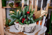 Świąteczna kompozycja z roślinami na Boże Narodzenie
