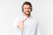 młody blondynka biały mężczyzna nad odizolowane tło słuchanie muzyka i taniec