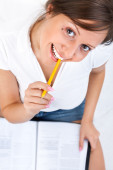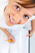 Młoda kobieta czytanie podróży magazyn