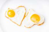 Izolat jaj smażonych na białym tle. Koncepcja wysokich cen jaj i żywności. Pojęcie zdrowego odżywiania.
