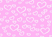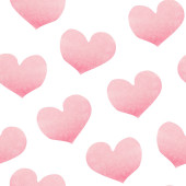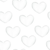 Białe objętościowe serce różnych rozmiarów na różowym tle akwarela bezszwowy wzór. Papier cyfrowy do pakowania, tapety, nadruku, plakatu, okładki
