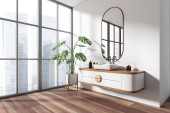 Zdjęcie "Drewniana szafka w pustym pokoju Muji, minimalistyczne wzory Japandi. Renderowanie 3D" może być wykorzystywane do celów osobistych i komercyjnych zgodnie z warunkami zakupionej licencji Royalty-free. Obraz jest dostępny do pobrania w jakości wysokiej rozdzielczości do 5760x3840.