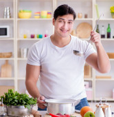 Zdjęcie "Młody kucharz pracuje w kuchni." może być wykorzystywane do celów osobistych i komercyjnych zgodnie z warunkami zakupionej licencji Royalty-free. Obraz jest dostępny do pobrania w jakości wysokiej rozdzielczości do 5760x3840.