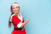 młoda kaukaska kobieta przebrany za mama noel izolowane na niebieskim tle dumny i zadowolony z siebie
