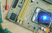 Zdjęcie "Elektroniczny inżynier trzymający chip komputerowy. Układ scalony do płytki głównej PC. Chip procesora. Elementy elektroniczne. Komputery. Koncepcja chipu, półprzewodnika i wojny handlowej." może być wykorzystywane do celów osobistych i komercyjnych zgodnie z warunkami zakupionej licencji Royalty-free. Obraz jest dostępny do pobrania w jakości wysokiej rozdzielczości do 5760x3840.