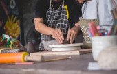 Klasa mistrzowska w dużym warsztacie na temat wytwarzania wyrobów z gliny.