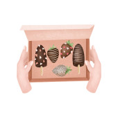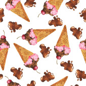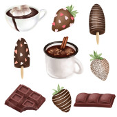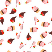 Płynny wzór truskawek w czekoladzie i czekoladowym lodu, ilustracja na białym tle