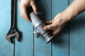 Zdjęcie "Silny mężczyzna w czerwonej rękawiczce trzyma klucz na czarnym tle. Koncepcja prac hydraulicznych, mechanicznych i motoryzacyjnych." może być wykorzystywane do celów osobistych i komercyjnych zgodnie z warunkami zakupionej licencji Royalty-free. Obraz jest dostępny do pobrania w jakości wysokiej rozdzielczości do 5760x3840.