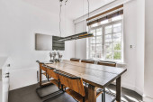 Zdjęcie "Drewniany stół z lampą w nowoczesnym salonie przy oknie" może być wykorzystywane do celów osobistych i komercyjnych zgodnie z warunkami zakupionej licencji Royalty-free. Obraz jest dostępny do pobrania w jakości wysokiej rozdzielczości do 5760x3840.