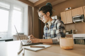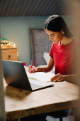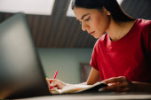 Zdjęcie "Młoda Latynoska zapisuje notatki podczas pracy z laptopem w domu" może być wykorzystywane do celów osobistych i komercyjnych zgodnie z warunkami zakupionej licencji Royalty-free. Obraz jest dostępny do pobrania w jakości wysokiej rozdzielczości do 5760x3840.
