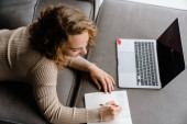 Zdjęcie "Młoda Latynoska zapisuje notatki u organizatora podczas pracy na laptopie w domu" może być wykorzystywane do celów osobistych i komercyjnych zgodnie z warunkami zakupionej licencji Royalty-free. Obraz jest dostępny do pobrania w jakości wysokiej rozdzielczości do 5760x3840.