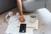 Młoda Latynoska zapisuje notatki u organizatora podczas pracy z laptopem w domu