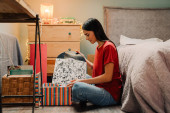 Zdjęcie "Młoda Latynoska kobieta korzystająca z telefonu komórkowego siedząc na krześle w sypialni w domu" może być wykorzystywane do celów osobistych i komercyjnych zgodnie z warunkami zakupionej licencji Royalty-free. Obraz jest dostępny do pobrania w jakości wysokiej rozdzielczości do 5760x3840.