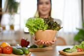 Zdjęcie "Urocza i ładna młoda Azjatka trzymająca pomidory, uśmiechnięta i patrząca w kamerę, ciesząca się robieniem miski sałatkowej w kuchni." może być wykorzystywane do celów osobistych i komercyjnych zgodnie z warunkami zakupionej licencji Royalty-free. Obraz jest dostępny do pobrania w jakości wysokiej rozdzielczości do 5760x3840.