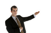 człowiek biznesu, wskazując