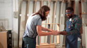 Carpenter working in carpentry shop. Carpenter working to making wood furniture in wood workshop