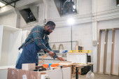 Zdjęcie "Carpenter working in carpentry shop. Carpenter working to making wood furniture in wood workshop" może być wykorzystywane do celów osobistych i komercyjnych zgodnie z warunkami zakupionej licencji Royalty-free. Obraz jest dostępny do pobrania w jakości wysokiej rozdzielczości do 5760x3840.