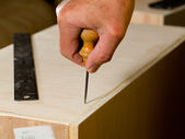 narzędzia stolarskie działa na kawałek sklejki