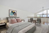 Zdjęcie "Komfortowe łóżko w pobliżu szafy i krzesła w minimalistycznym stylu sypialni w nowoczesnym apartamencie" może być wykorzystywane do celów osobistych i komercyjnych zgodnie z warunkami zakupionej licencji Royalty-free. Obraz jest dostępny do pobrania w jakości wysokiej rozdzielczości do 5760x3840.