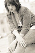 smutna, samotna dziewczyna siedzi